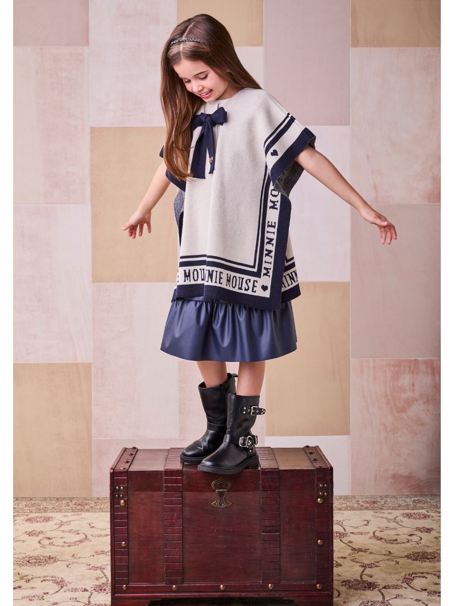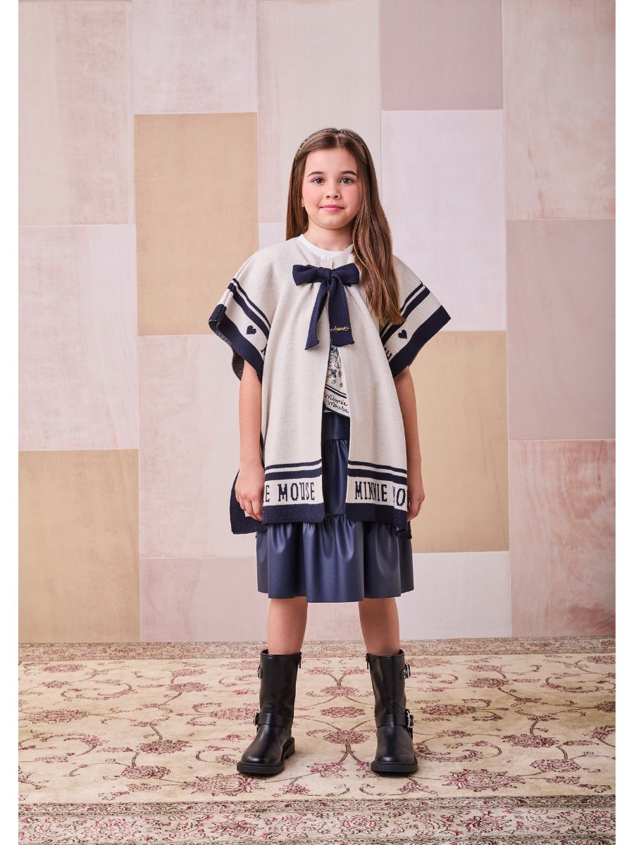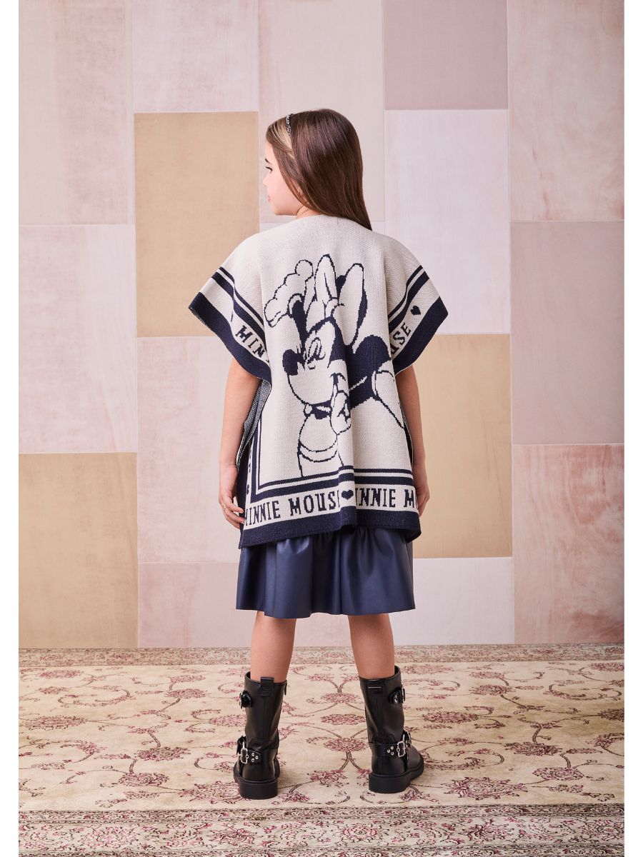 Casaco poncho Minnie de Tricô 76% acrílico, 24% algodão. Placa decorativa no laço frente.